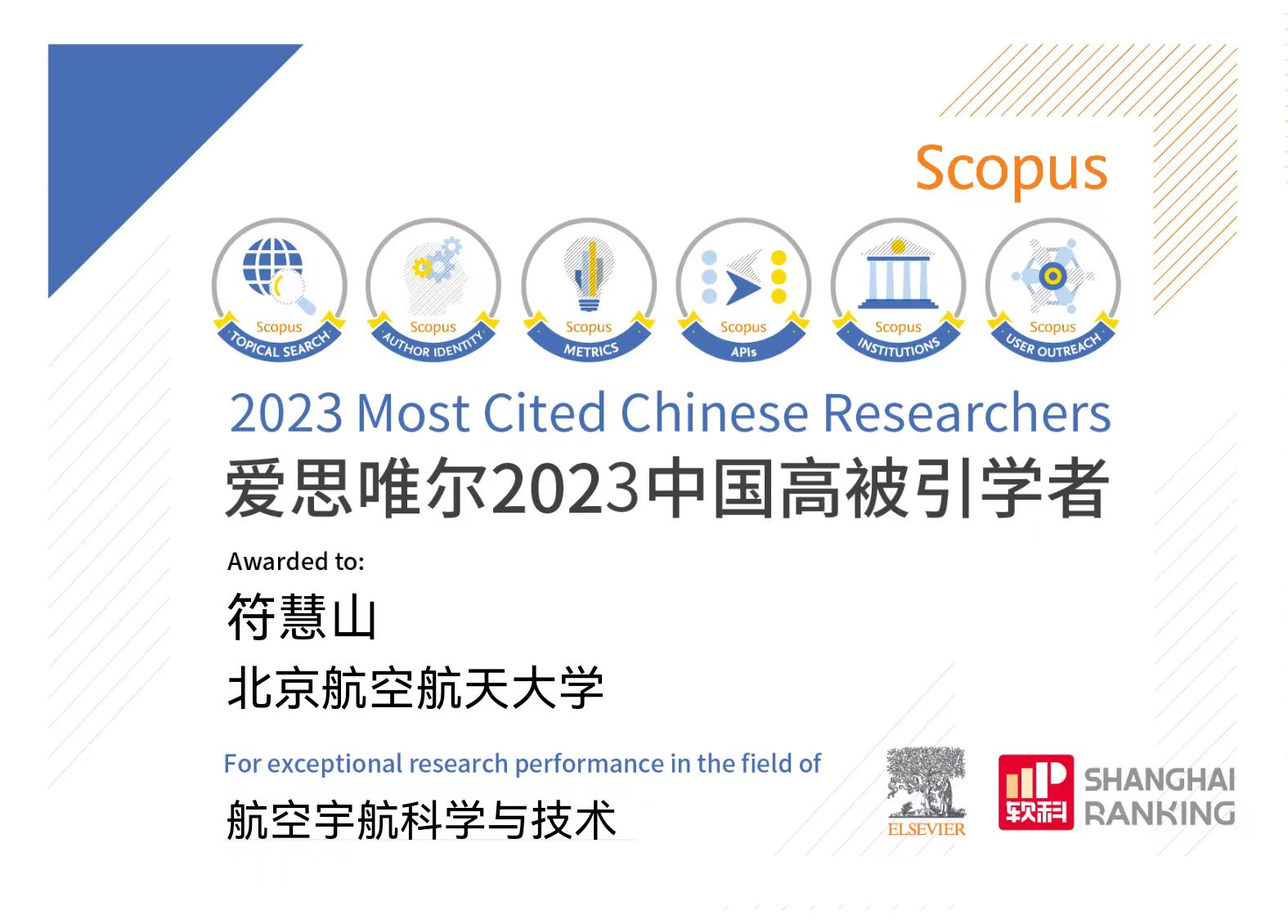 2024年3月27日,爱思唯尔(Elsevier)发布了2023“中国高被引学者”(Highly Cited Chinese Researchers)榜单。此榜单以全球权威的引文与索引数据库Scopus作为中国学者科研成果的统计来源。yl34511线路中心共有55位学者入选,航空宇航科学与技术领域入选1人,为公司符慧山教授。